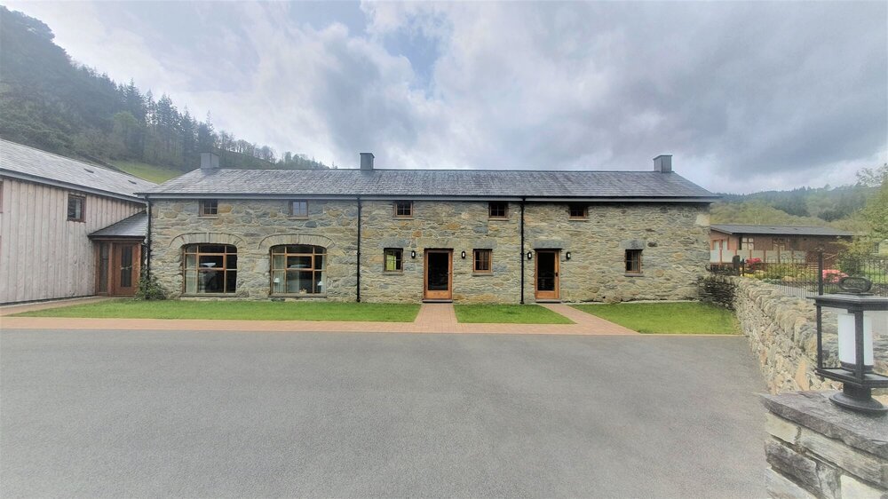 The cottage is a traditional natural stone building with oak windows and doors and a Welsh slate roof. To the front, there is a grassed area and private parking.